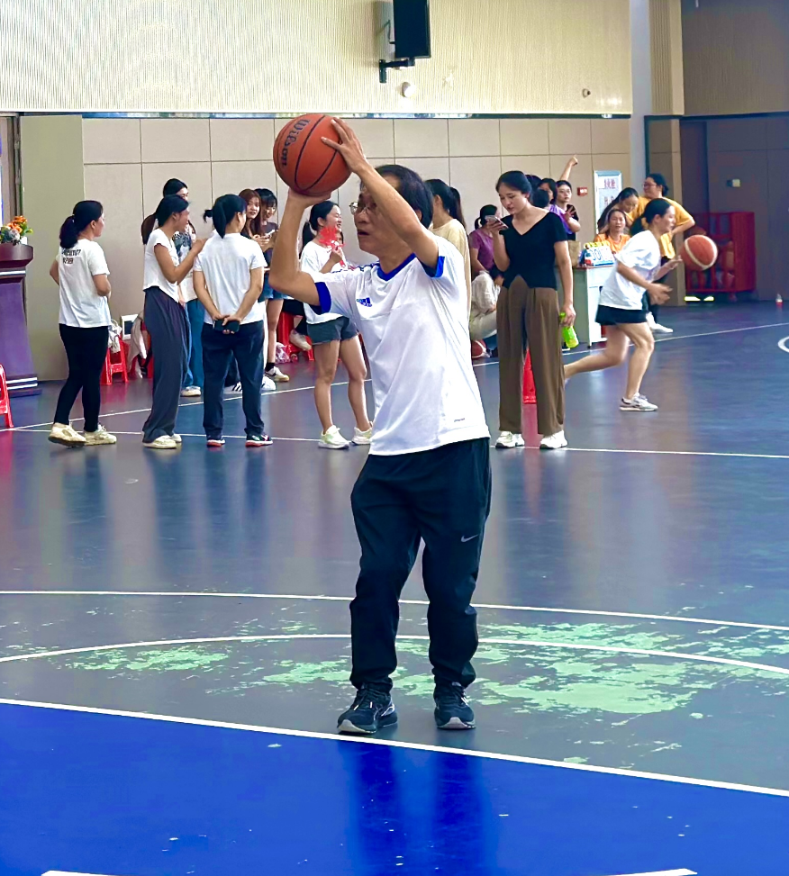 伴随着比赛哨声响起,场上队员全力以赴,男女搭配,积极进攻,顽强防守,争相抢分,连贯的动作、精准的传球、帅气的投篮,尽情展现风采。本次比赛共设团体三人比赛、团体接力赛、男子定点投篮、个人运球,女子定点篮球、个人运球比赛。