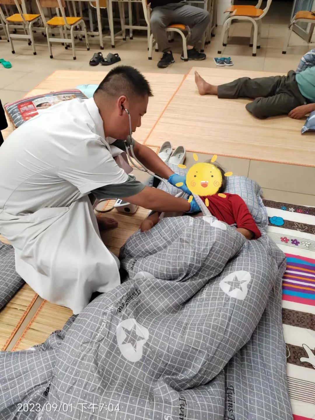 9月1日23:40分,坦洲镇社区卫生服务中心接到群联村报告,群联小学二楼有一位阿叔身体不舒服。接到通知后,群联村社区卫生服务站迅速响应,安排医护人员前往现场。路上风雨交加,寸步难行,一名护士甚至滑倒摔伤了腰,即便如此,医护人员仍然尽最大的努力及时抵达现场。医护人员到达现场后立刻了解老人具体情况,老人是在上厕所时突然晕厥被人发现,醒来后又二次晕厥。医护人员马上为老人进行血压、脉搏等简单的生命体征检查,各项检查结果均正常。待与120急救人员做好交接后,医护人员又马不停蹄回到站点继续进行值守。