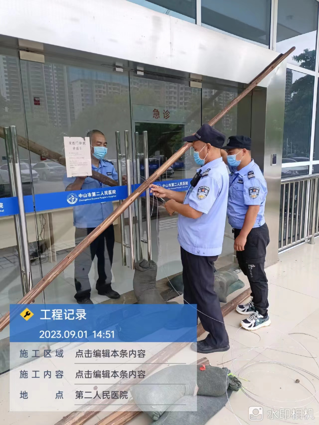 9月1日下午,为了抵御2023年第九号台风“苏拉”的袭击,中山市第二人民医院充分做好后勤保障,为各大门诊加固了玻璃门、给下水道清理堵塞物、检查电力设备与线路安全、夜间巡查门窗设施,确保医院的医疗运作一切正常。