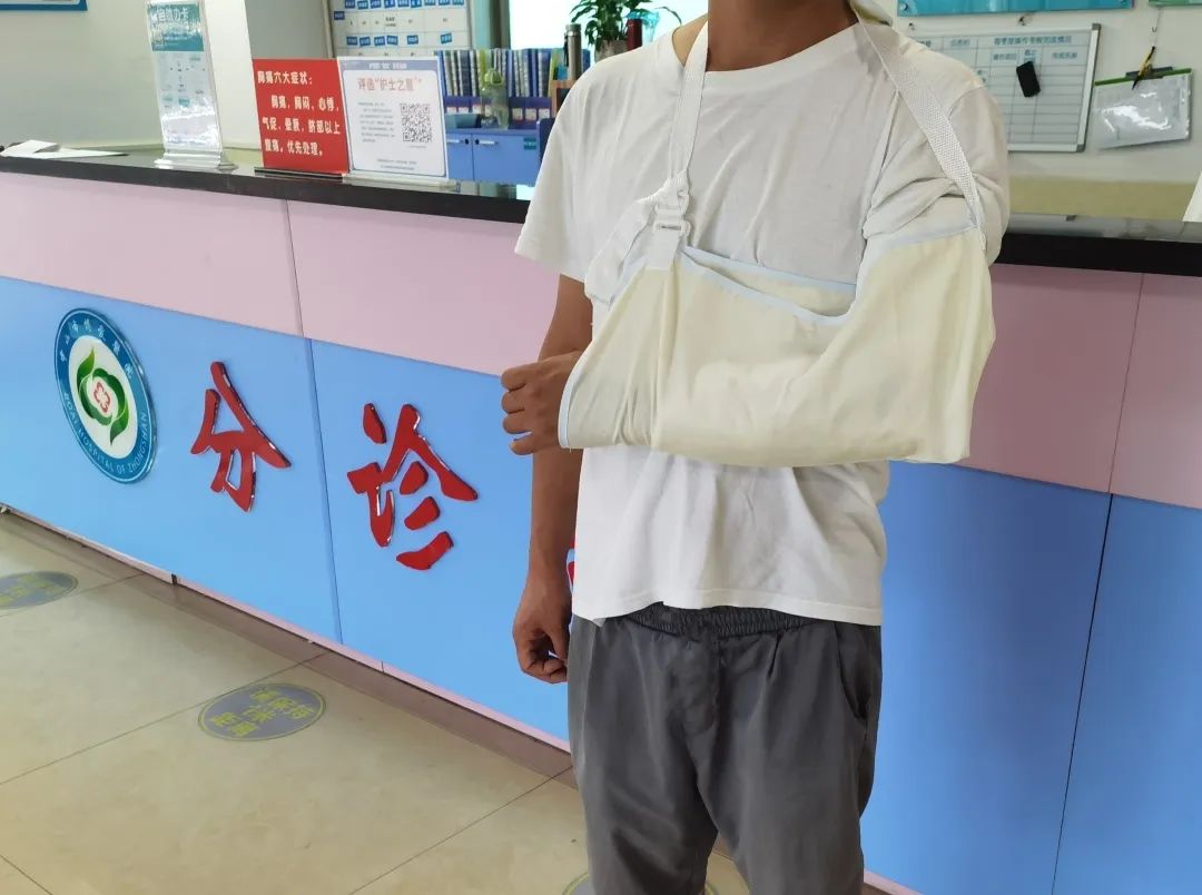 9月2日凌晨2点多,正是“苏拉”登陆之际,博爱医院急诊科接到120出车通知,到远洋城抢救一例昏迷病人。急诊科值班医生龙立镖和护士唐俊欢立即出车前往远洋城。到了远洋城地下车库,因雨天路滑,唐俊欢不慎滑倒摔跤,现场感到一阵钻心的疼痛,但也顾不上那么多,跟着医生继续上门进行抢救。因患者病情严重,救护车上病人又出现心跳骤停需要进行抢救。护士唐俊欢此时也顾不上受伤情况如何,又立即协助医生进行心肺复苏和气管插管,直至病人复苏成功。回院后,在院坚守的急诊科医护马上接力继续抢救患者,并将患者收治至ICU。直到凌晨三点多,他交班后才前往医院影像科拍片,拍片结果提示:左肘关节骨折,随即到医院骨科进行处理,目前情况稳定。