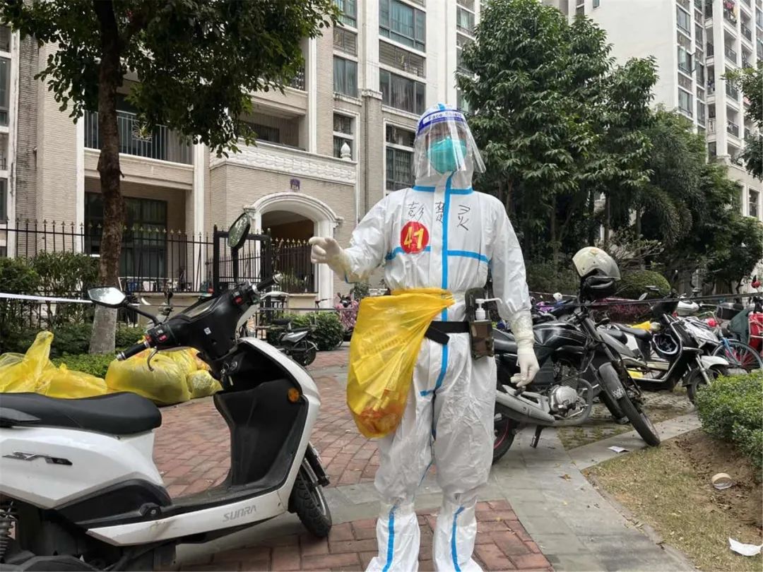 坦洲镇卫生监督所彭楚灵同志正是封控小区居民,他主动冲锋在疫情防控第一线,当起了防控志愿服务员,将物资送到管控区内群众家中,并协助将垃圾清理带离,配合小区全力做好人员排查、核酸检测、物资分发等工作,引导群众理解配合防疫工作。