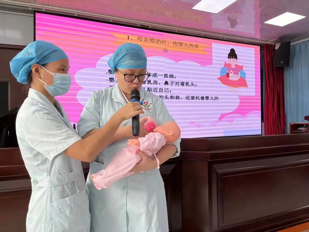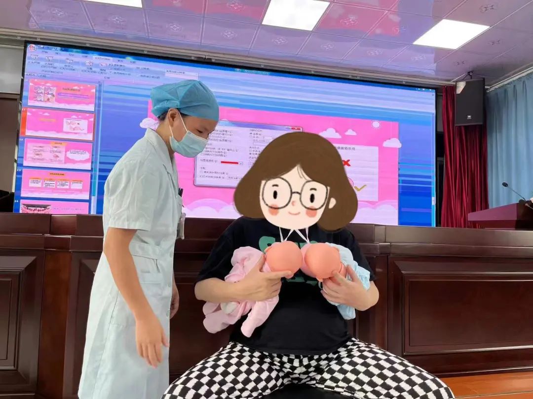 活动一,由神湾医院医护人员在孕妇学校进行现场宣教,向准妈妈、宝妈们科普母乳喂养的重要性和母乳喂养过程中需注意的事项,为准妈妈和宝妈们答疑解惑,现场对准妈妈进行母乳喂养教学。