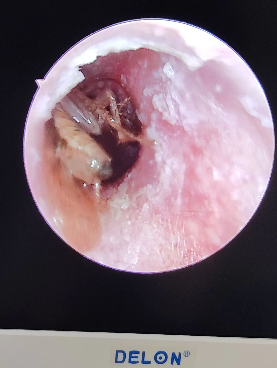 据了解,当晚该患者正在睡梦中,突然感到左耳一阵异动,随后出现剧烈疼痛和耳鸣,急忙连夜赶到我院就诊。
