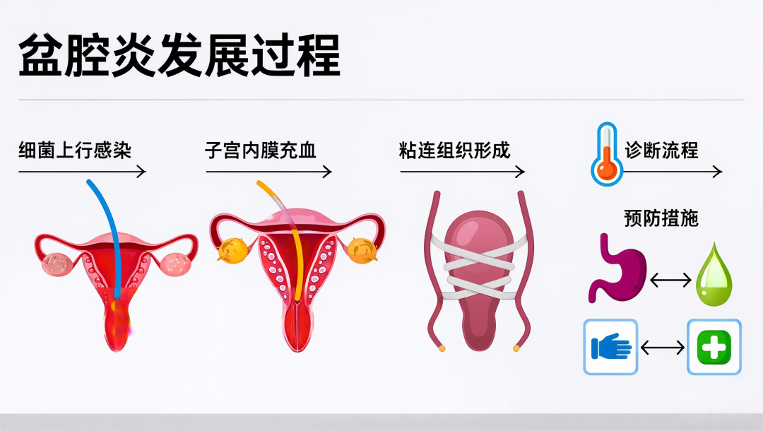 简单来说,急性盆腔炎是指女性上生殖道(包括子宫、输卵管、卵巢)及其周围组织(如盆腔腹膜)发生的急性细菌感染。它通常不是由单一细菌引起的,而是多种病原体混合感染的结果。