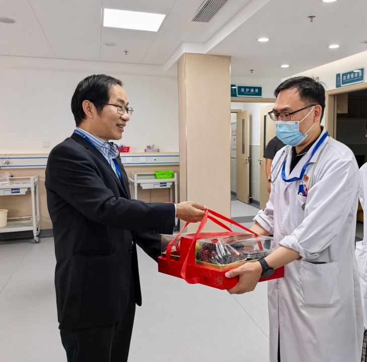 党支部书记、院长梅亮代表院领导班子高度赞扬了干部职工在春节期间坚守岗位、守护生命的奉献精神。他表示,希望大家在新的一年里,继续团结协作,保持昂扬斗志,在临床诊疗和学科建设上实现新突破,为推动医院高质量发展贡献更多力量。