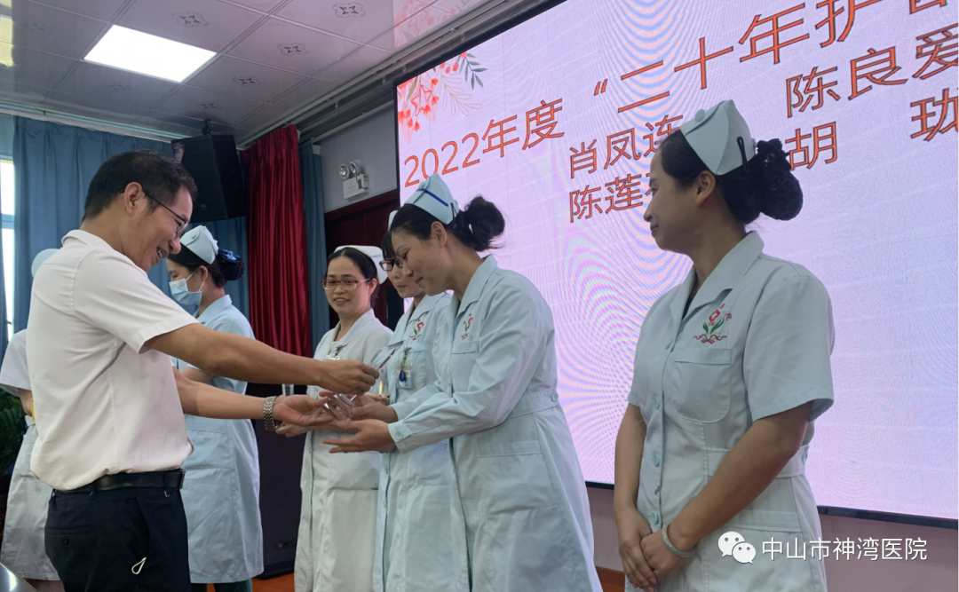 近日,神湾医院召开5·12护士节表彰活动,对20年以上护龄、中山市2022年度优秀护士进行表彰,院领导班子、中层干部以及全院护理同志参加。