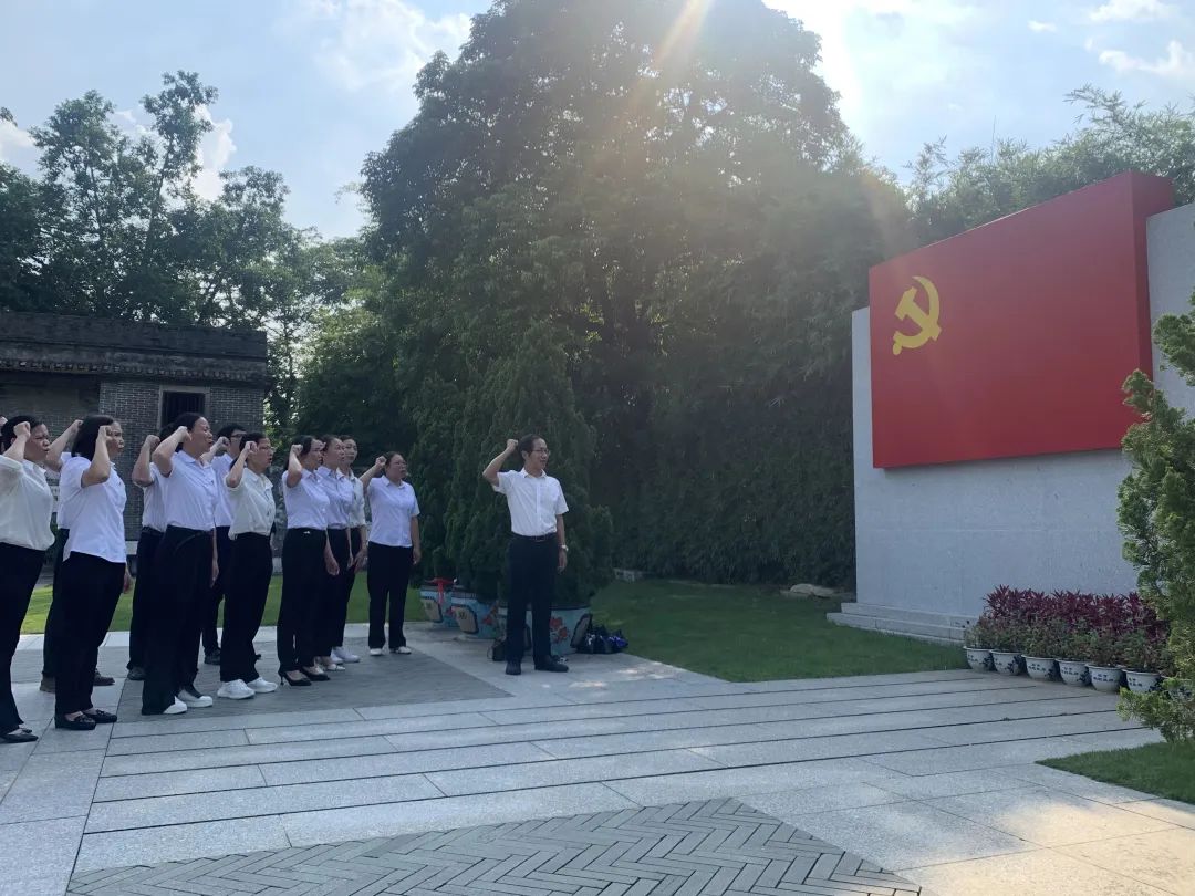 来到杨殷故居门前的党建主题公园,全体党员举起右拳,面对鲜红的党旗庄严宣誓,铿锵有力地重温入党誓词。党员们表示,来到杨殷故居进行参观学习,让大家经受了一次深刻的革命教育、党性锻炼和精神洗礼。结合这次主题党日活动,并表示要向杨殷同志学习,向革命先辈的对标看齐,锤炼忠诚、干净、有担当的政治品格,为党和人民的健康事业奋斗终生!